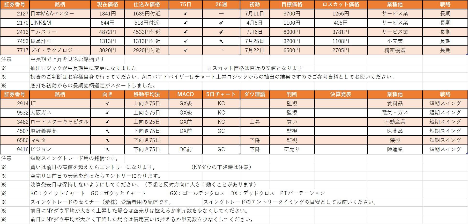 【ドラゴンAI株、厳選銘柄情報】最終更新 2022/8/22