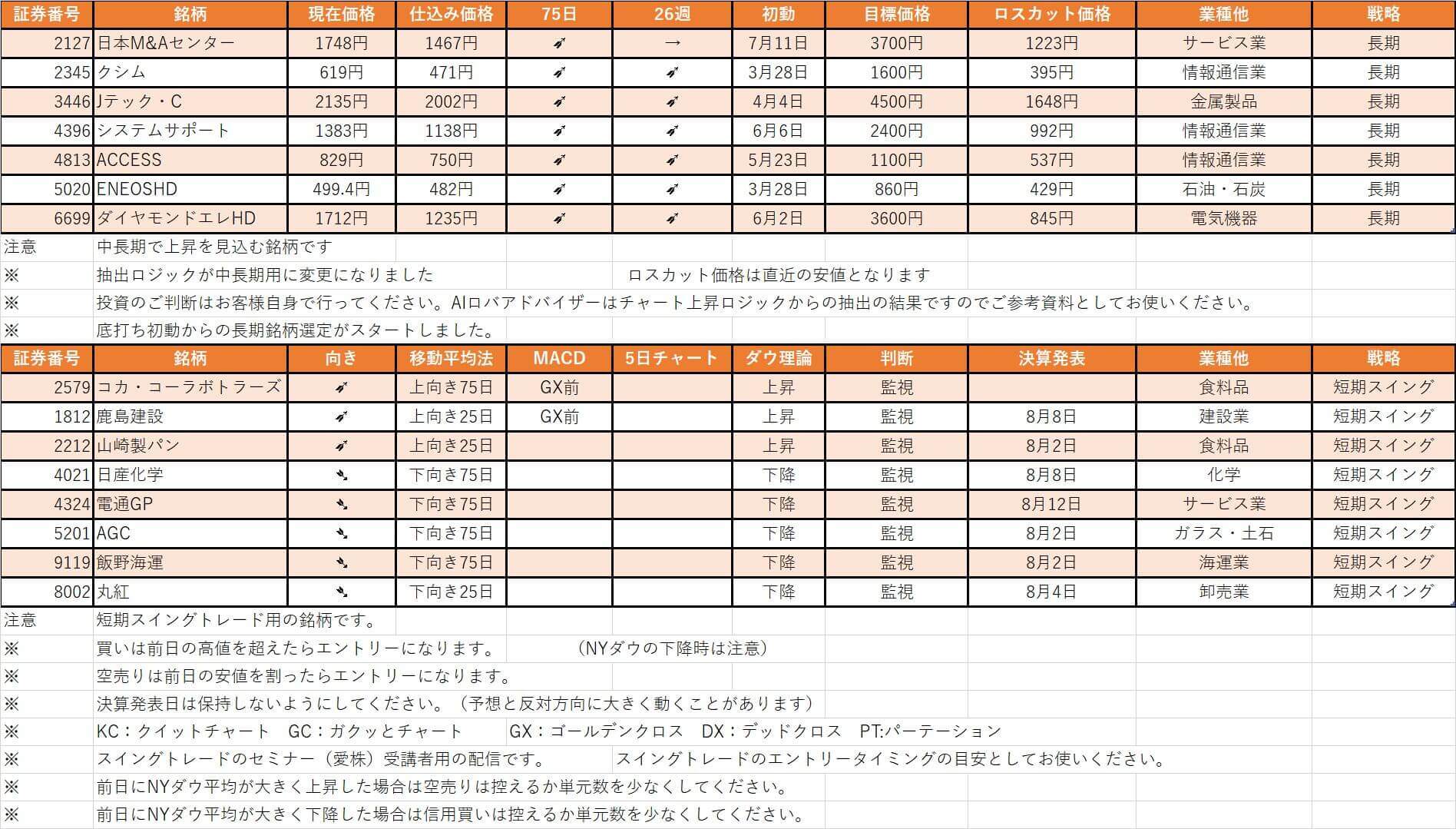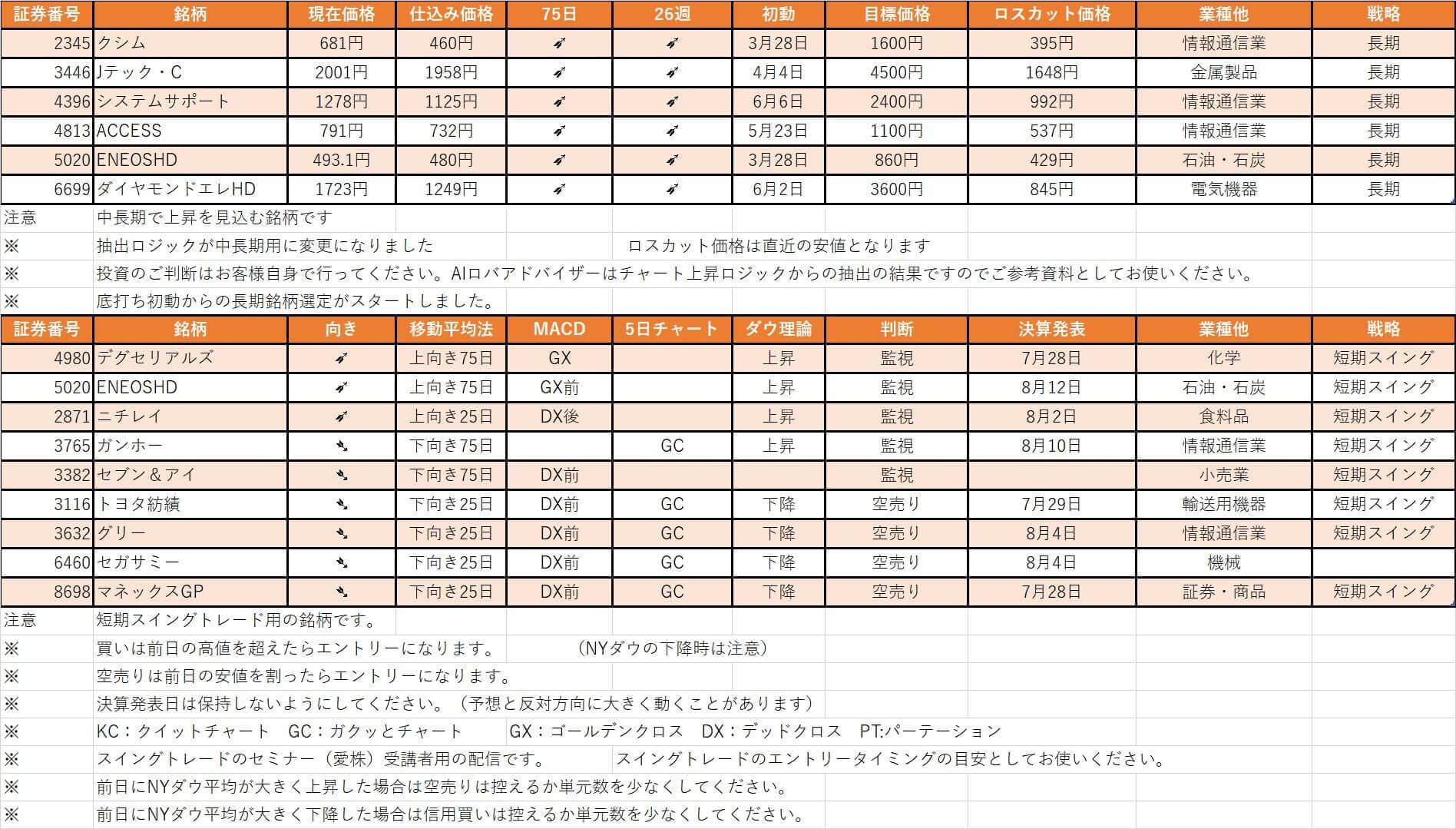 【ドラゴンAI株、厳選銘柄情報】最終更新 2022/7/25
