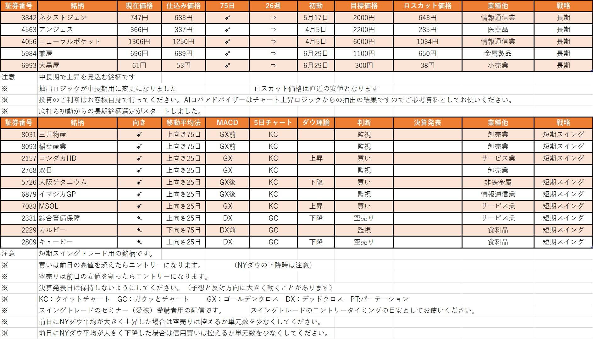 【ドラゴンAI株、厳選銘柄情報】最終更新 2022/5/30